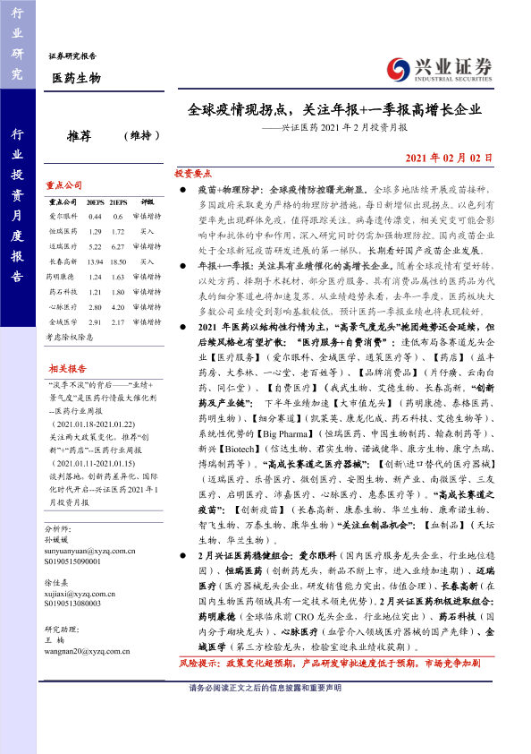 【兴业证券】【20210202】全球疫情现拐点,关注年报+一季报高增长企业-29页