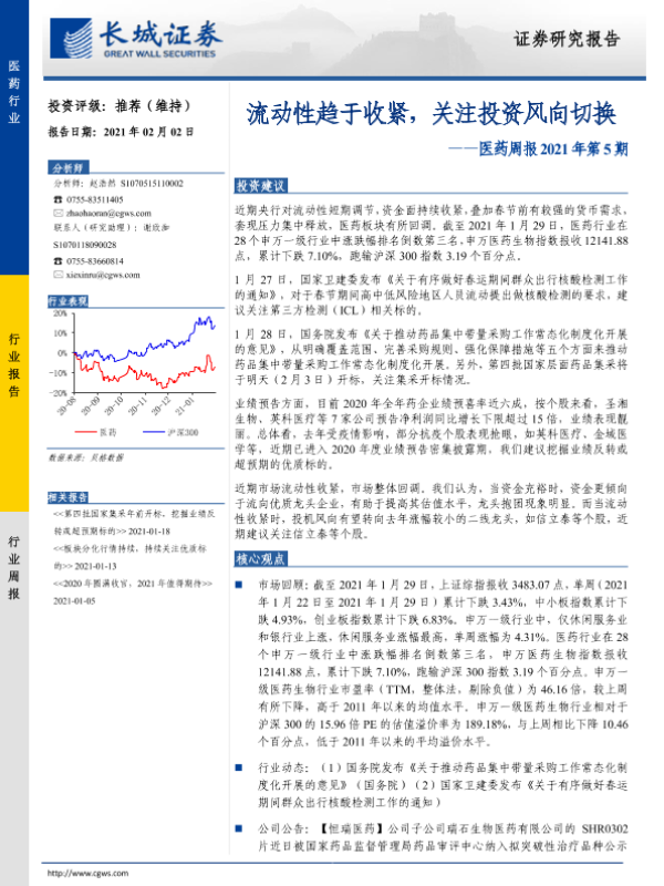 【长城证券】【20210202】医药周报2021年第5期:流动性趋于收紧,关注投资风向切换-19页