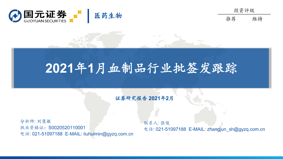 【国元证券】【202102】2021年1月血制品行业批签发跟踪-14页