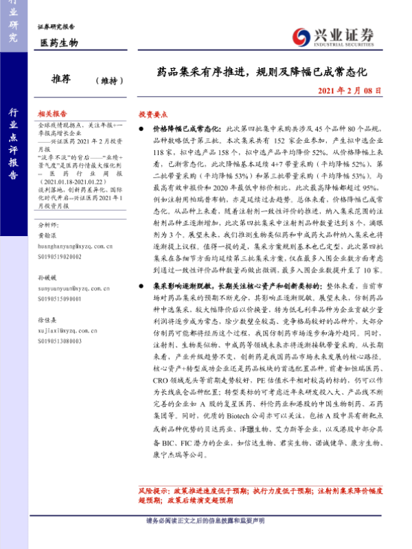 【兴业证券】【20210208】药品集采有序推进,规则及降幅已成常态化-6页