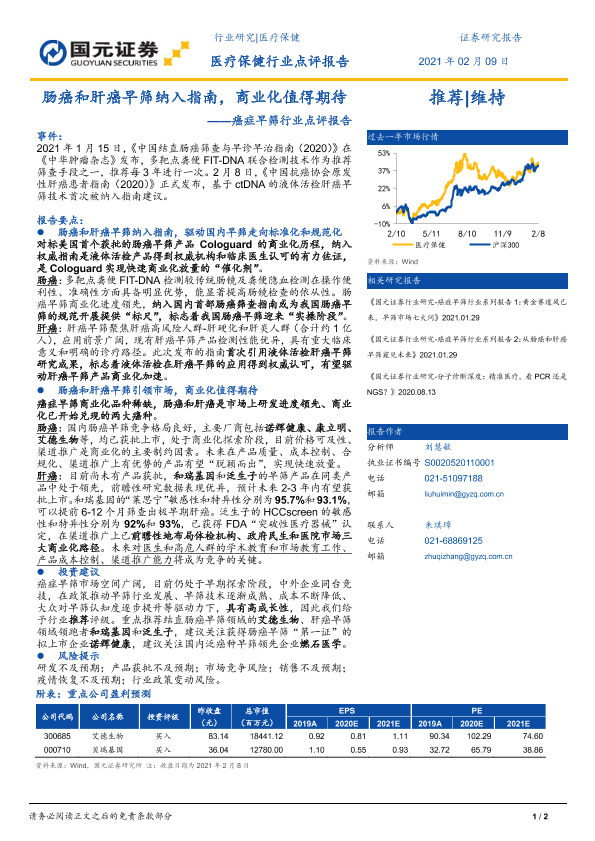 【国元证券】【20210209】癌症早筛行业点评报告:肠癌和肝癌早筛纳入指南,商业化值得期待-2页