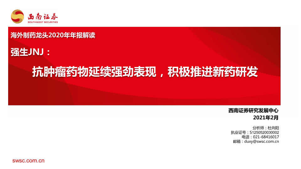 【西南证券】【202102】海外制药龙头2020年年报解读:强生JNJ:抗肿瘤药物延续强劲表现,积极推进新药研发-17页