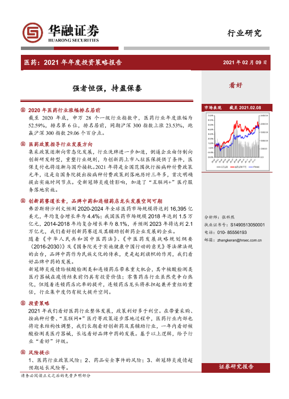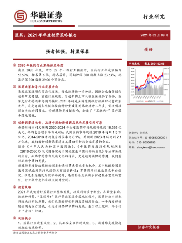【华融证券】【20210209】医药2021年年度投资策略报告:强者恒强,持盈保泰-30页