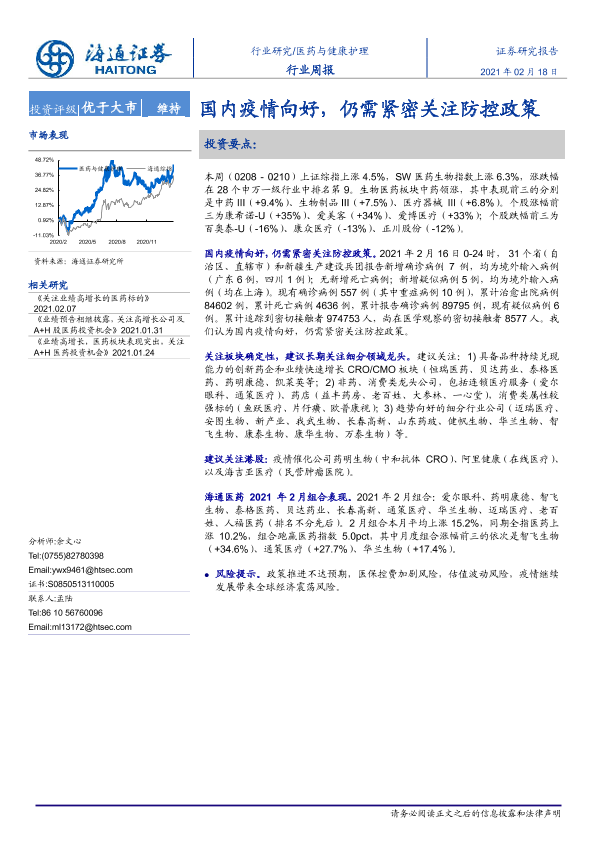 【海通证券】【20210218】医药与健康护理行业周报:国内疫情向好,仍需紧密关注防控政策-8页