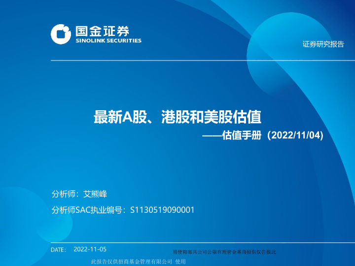 【国金证券】【20221105】估值手册:最新A股、港股和美股估值-27页