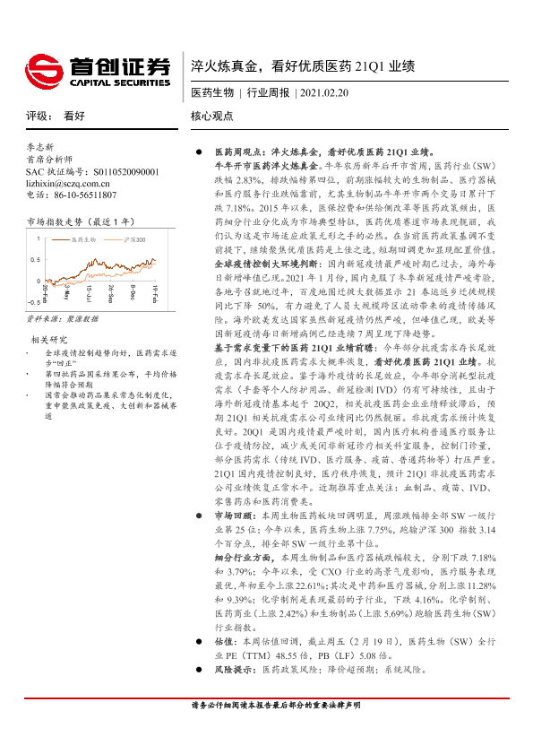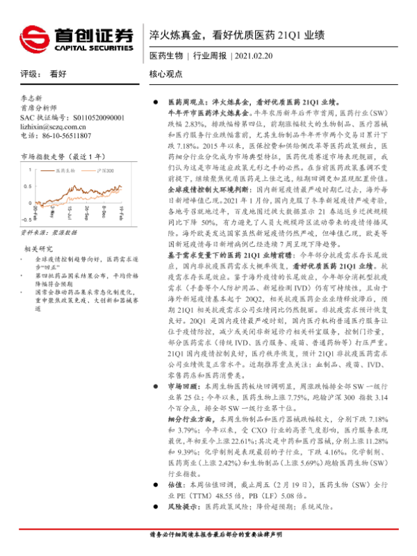 【首创证券】【20210220】医药生物行业周报:淬火炼真金,看好优质医药21Q1业绩-12页