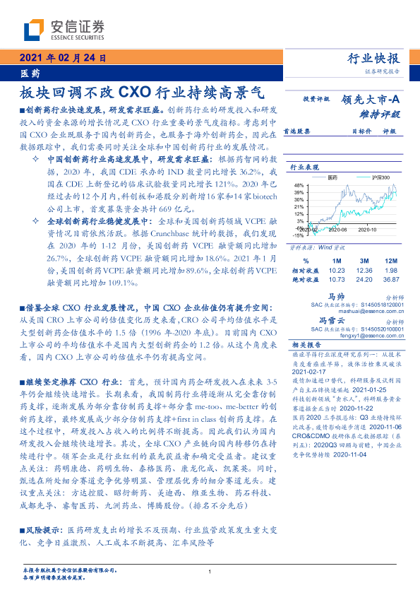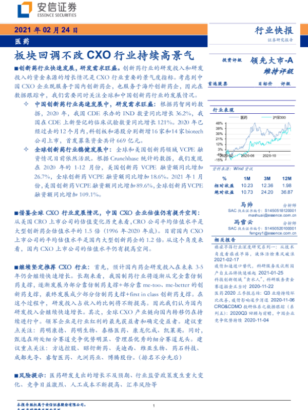 【安信证券】【20210224】医药行业快报:板块回调不改CXO行业持续高景气-7页