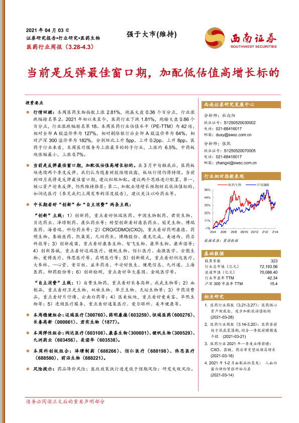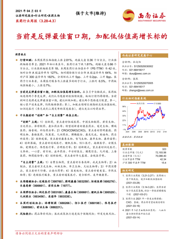 【西南证券】【20210403】医药行业周报:当前是反弹最佳窗口期,加配低估值高增长标的-42页