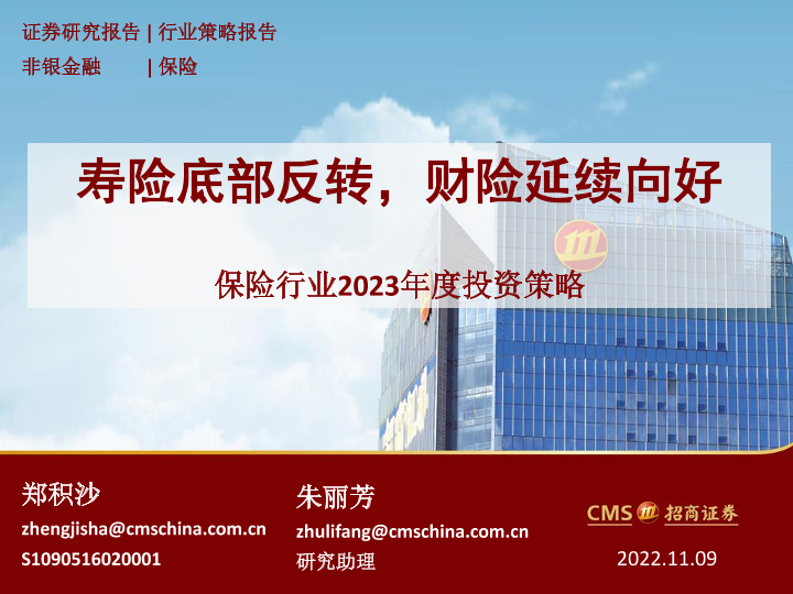 【海通证券】【20221109】保险行业2023年度投资策略:寿险底部反转,财险延续向好-40页