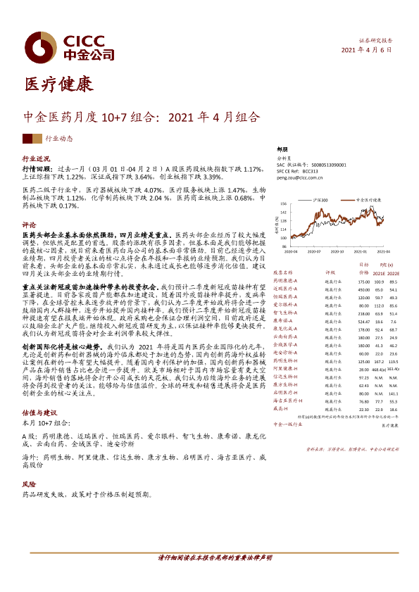 【中金公司】【20210406】中金医药月度10+7组合:2021年4月组合-11页