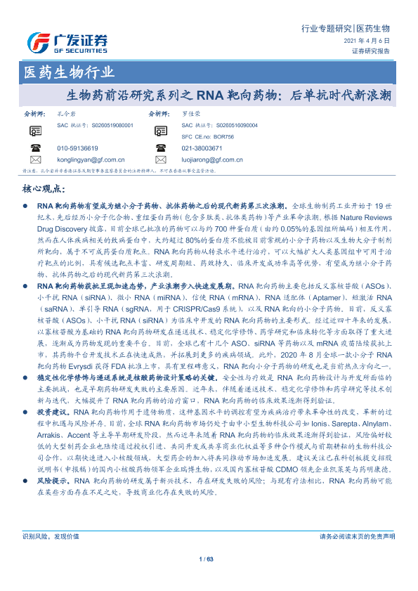 【广发证券】【20210406】生物药前沿研究系列之RNA靶向药物:后单抗时代新浪潮-63页