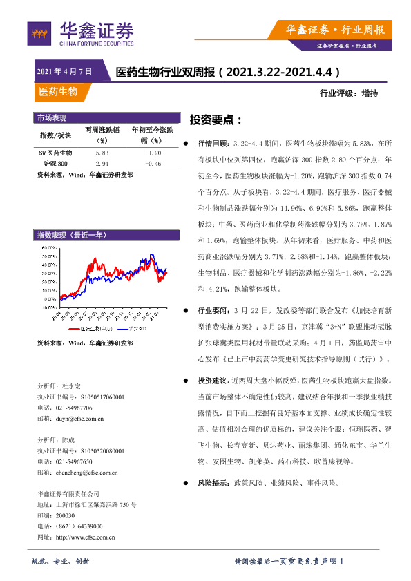 【华鑫证券】【20210407】医药生物行业双周报-10页