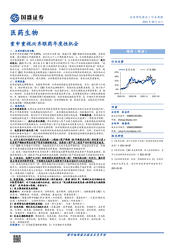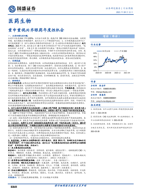 【国盛证券】【20210411】医药生物行业周报:重申重视兴齐眼药年度性机会-20页
