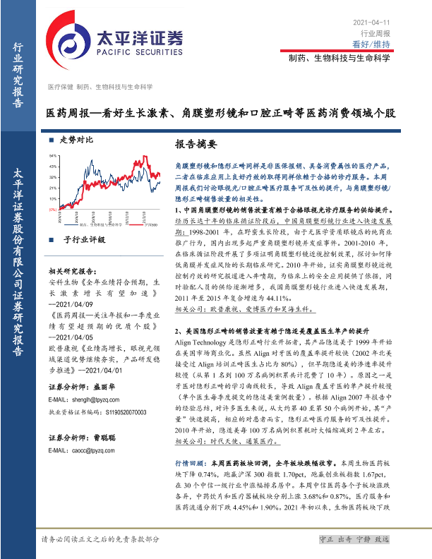 【太平洋证券】【20210411】医药周报:看好生长激素、角膜塑形镜和口腔正畸等医药消费领域个股-19页