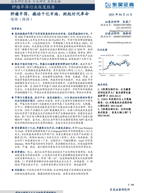 【东吴证券】【20210411】肿瘤早筛行业深度报告:肿瘤早筛,撬动千亿市场,掀起时代革命-64页