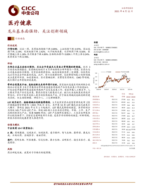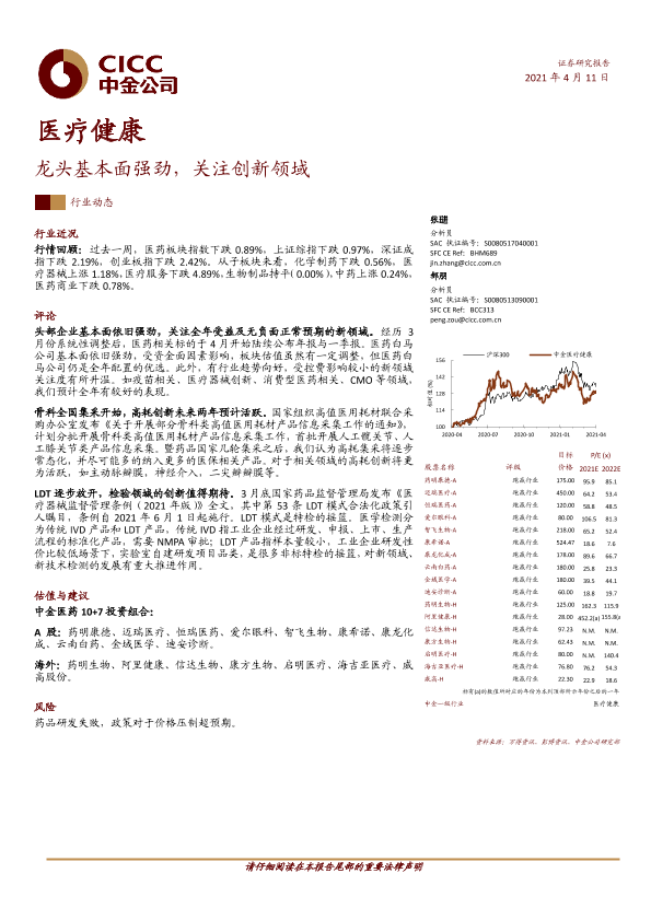 【中金公司】【20210411】医疗健康:龙头基本面强劲,关注创新领域-12页