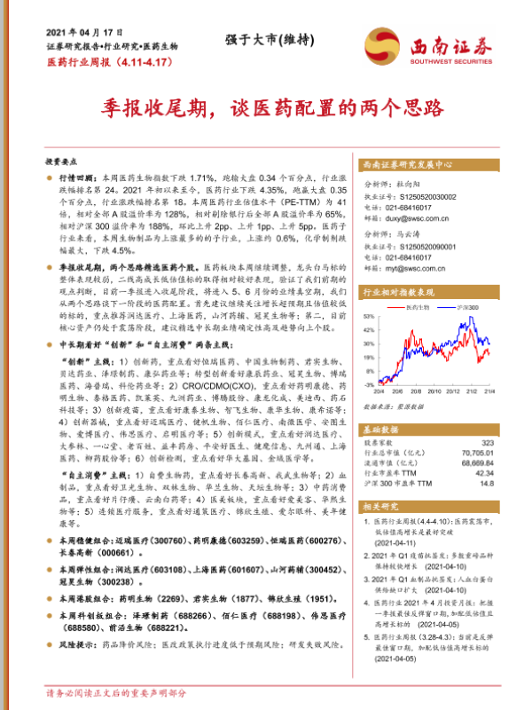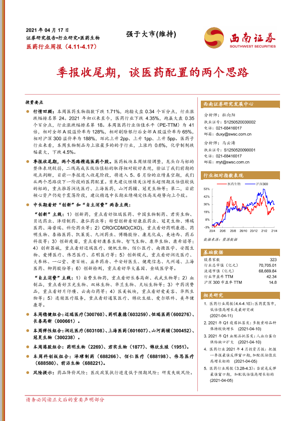【西南证券】【20210417】医药行业周报:季报收尾期,谈医药配置的两个思路-44页