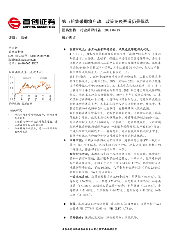 【首创证券】【20210419】第五轮集采即将启动,政策免疫赛道仍是优选-14页