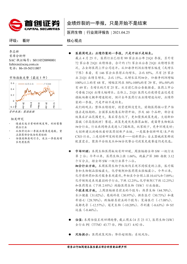 一季报 业绩增长 医药生物 投资逻辑 政策免疫