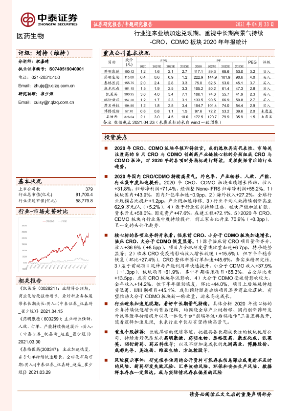【中泰证券】【20210423】CRO、CDMO板块2020年年报统计-行业迎来业绩加速兑现期,重视中长期高景气持续-23页