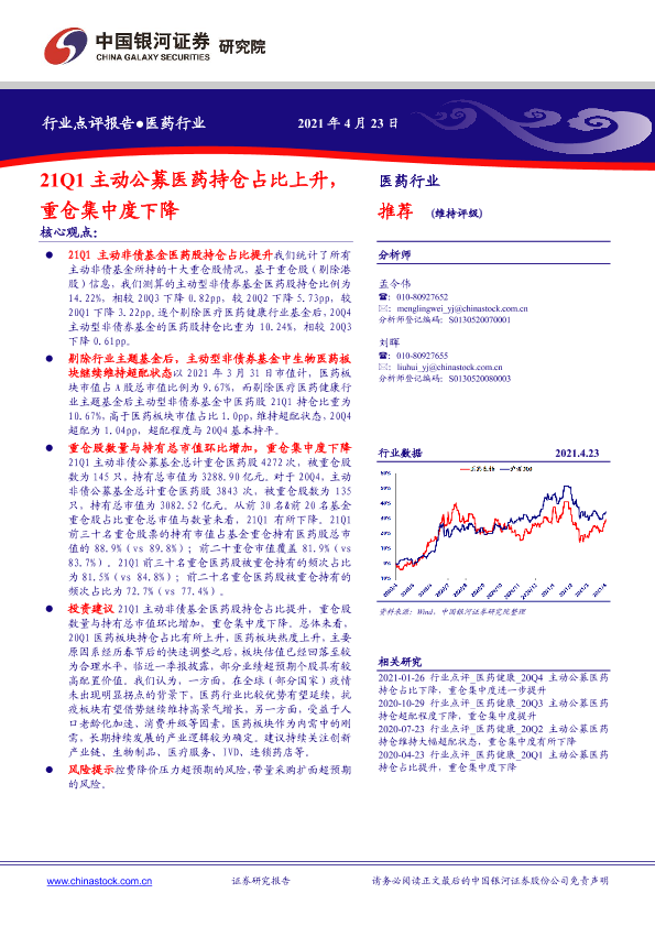 【银河证券】【20210423】21Q1主动公募医药持仓占比上升,重仓集中度下降-10页