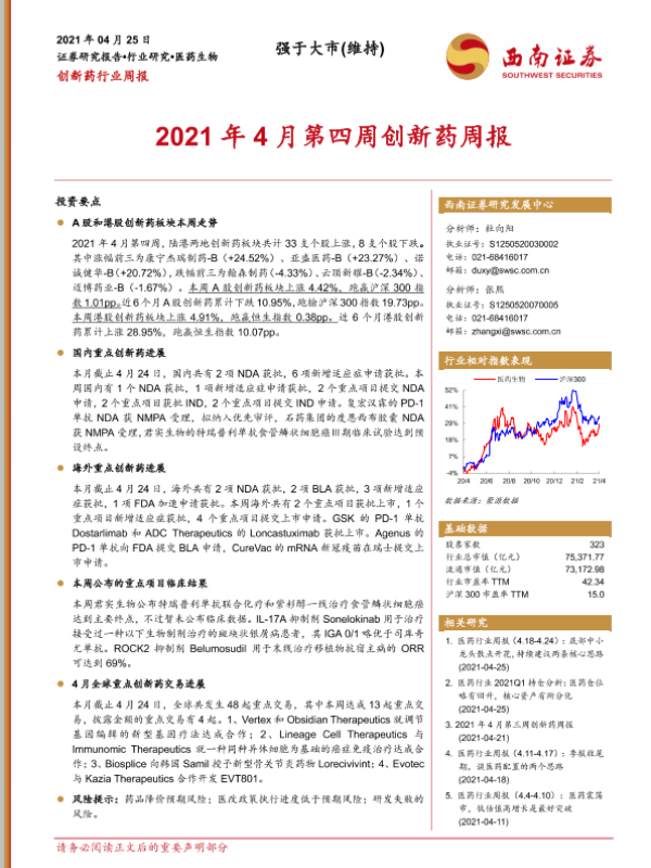 【西南证券】【20210425】2021年4月第四周创新药周报-18页