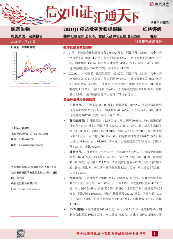【山西证券】【20210426】2021Q1疫苗批签发数据跟踪:整体批签发同比下滑,重磅大品种仍延续增长态势-24页