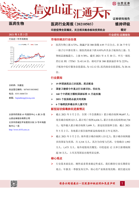 【山西证券】【20210503】医药行业周报:印度疫情全面爆发,关注相关概念板块投资机会-9页