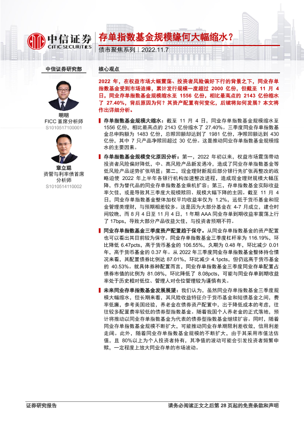【中信证券】【20221107】债市聚焦系列:存单指数基金规模缘何大幅缩水?-20页