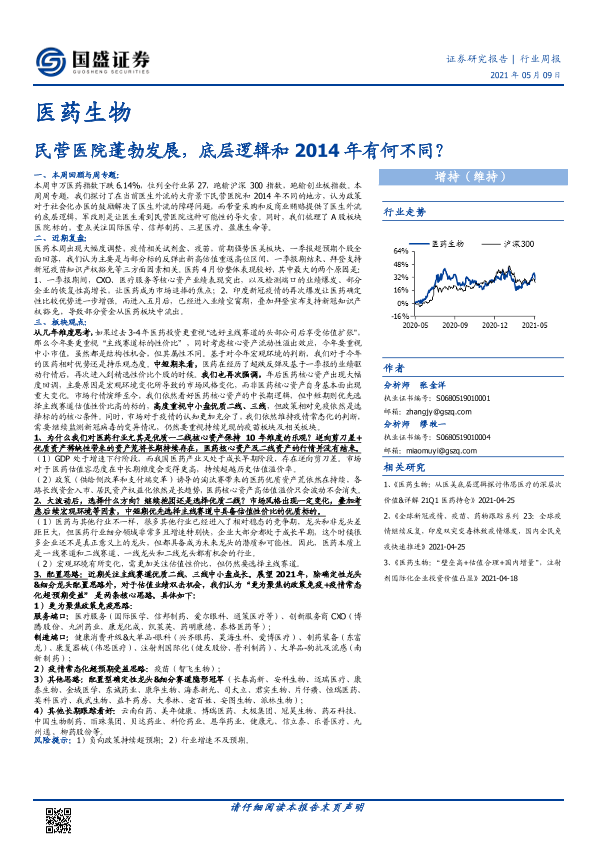 【国盛证券】【20210509】医药生物行业周报:民营医院蓬勃发展,底层逻辑和2014年有何不同?-24页