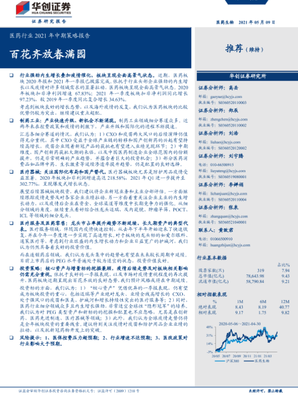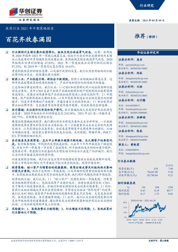 【华创证券】【20210509】医药行业2021年中期策略报告:百花齐放春满园-53页