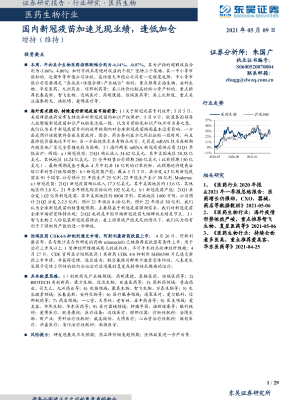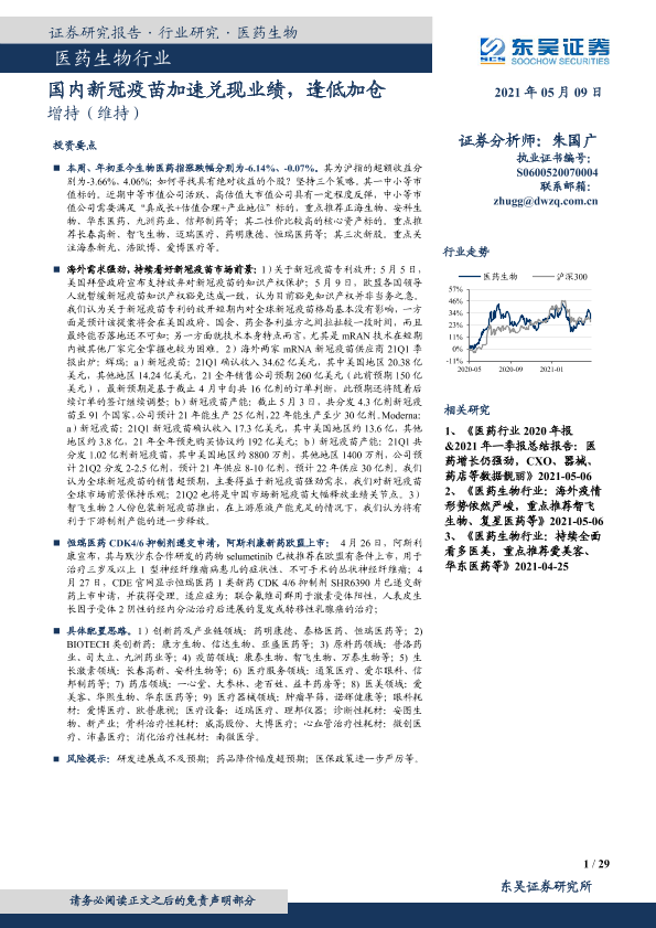 【东吴证券】【20210509】国内新冠疫苗加速兑现业绩,逢低加仓-29页