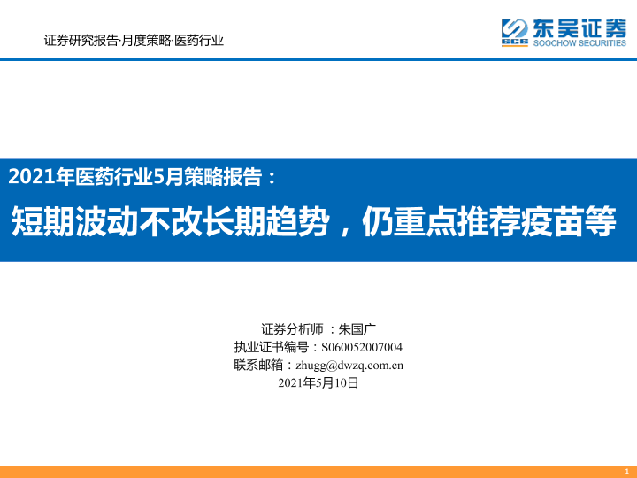 【东吴证券】【20210510】2021年医药行业5月策略报告:短期波动不改长期趋势,仍重点推荐疫苗等-47页