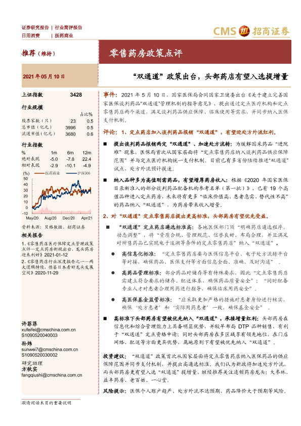 【海通证券】【20210510】零售药房政策点评:“双通道”政策出台,头部药店有望入选提增量-2页