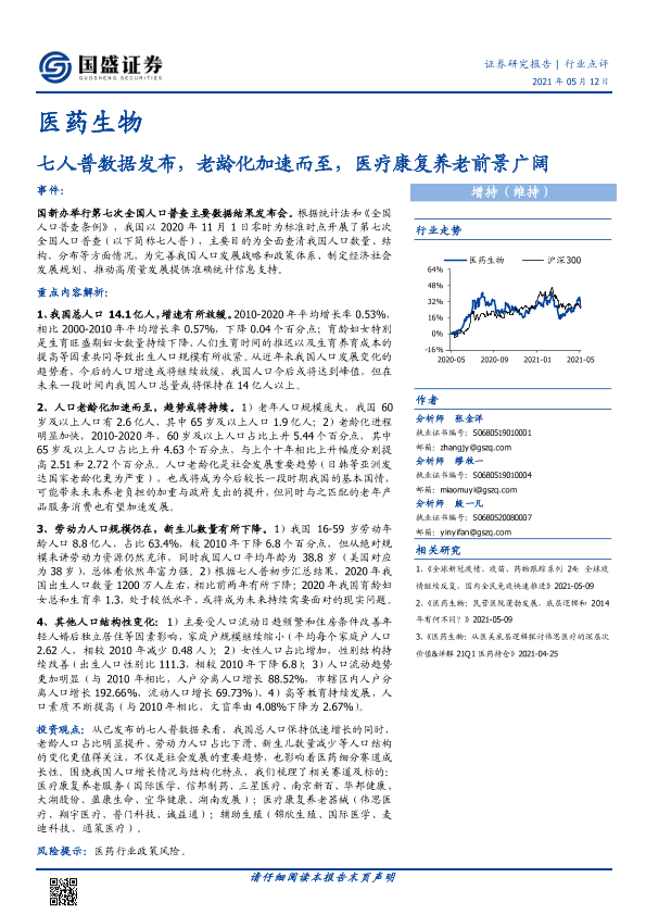 【国盛证券】【20210512】七人普数据发布,老龄化加速而至,医疗康复养老前景广阔-5页
