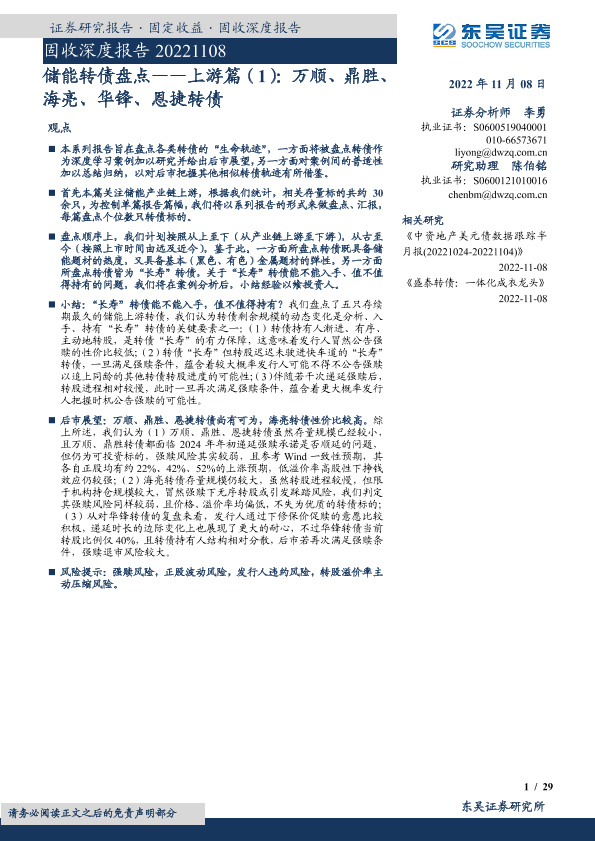 【东吴证券】【20221108】储能转债盘点:上游篇(1),万顺、鼎胜、海亮、华锋、恩捷转债-29页