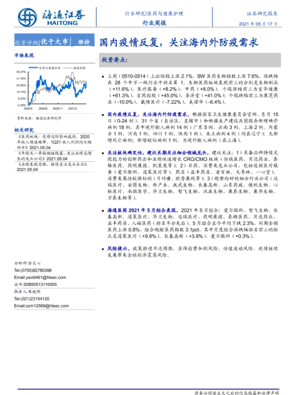 【海通证券】【20210517】医药与健康护理行业周报:国内疫情反复,关注海内外防疫需求-5页