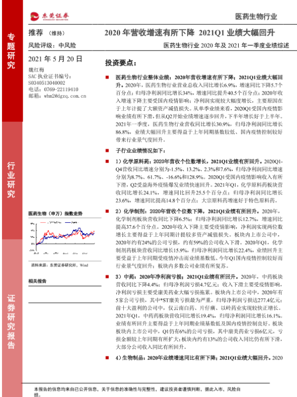 【东莞证券】【20210520】医药生物行业2020年及2021年一季度业绩综述-38页