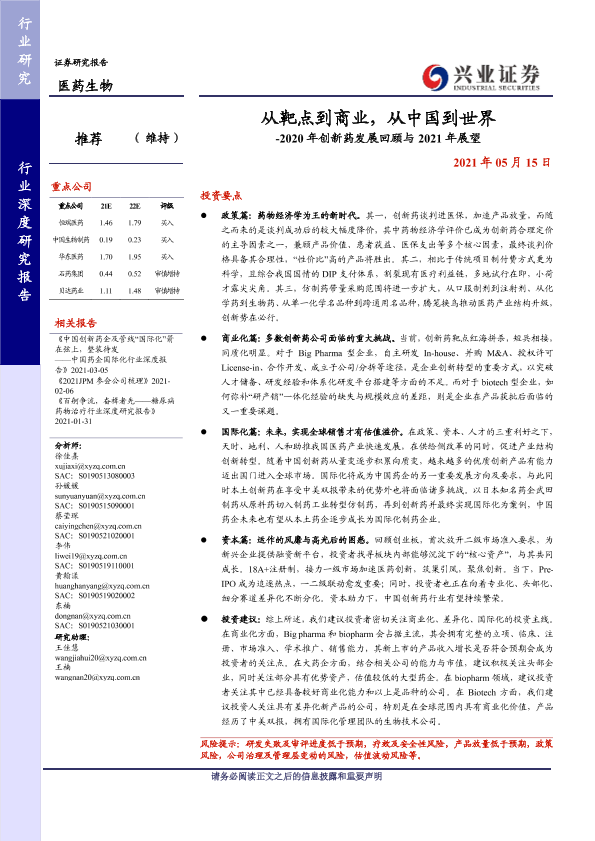 【兴业证券】【20210515】2020年创新药发展回顾与2021年展望-从靶点到商业,从中国到世界-318页
