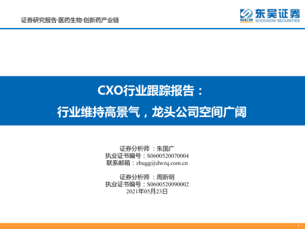 【东吴证券】【20210523】CXO行业跟踪报告:行业维持高景气,龙头公司空间广阔-44页
