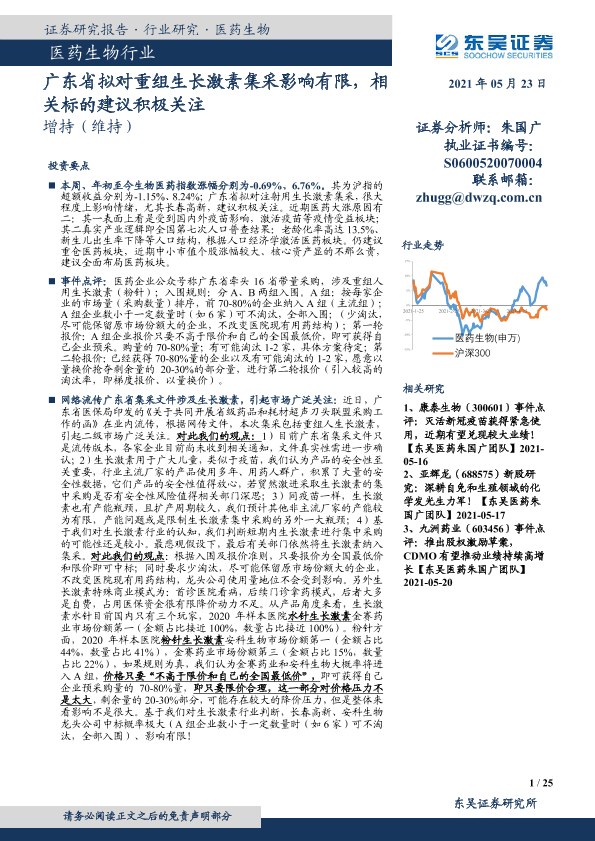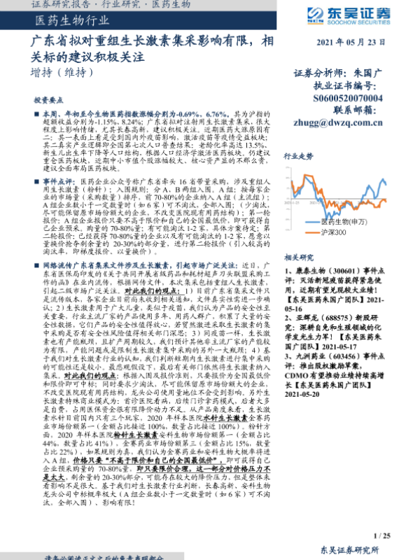 【东吴证券】【20210523】广东省拟对重组生长激素集采影响有限,相关标的建议积极关注-25页