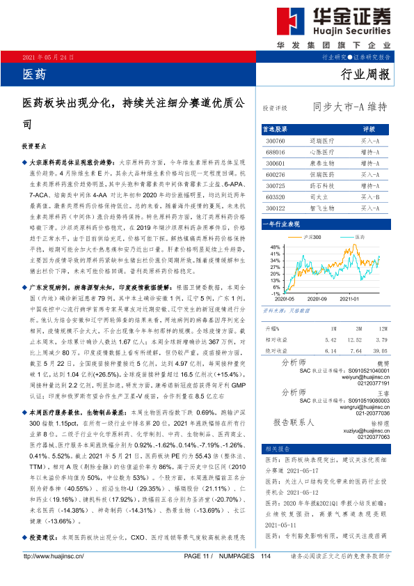 【华金证券】【20210524】医药行业周报:医药板块出现分化,持续关注细分赛道优质公司-22页