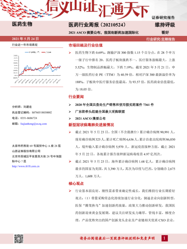 【山西证券】【20210524】医药行业周报:2021ASCO摘要公布,我国创新药加速国际化-9页