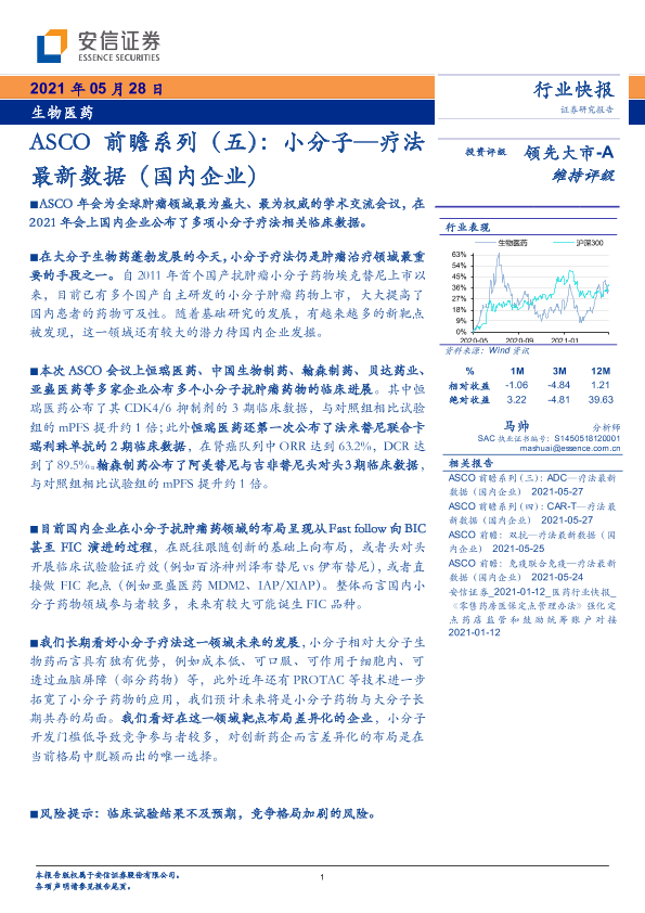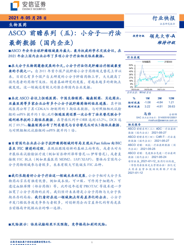 【安信证券】【20210528】ASCO前瞻系列(五):小分子—疗法最新数据(国内企业)-5页