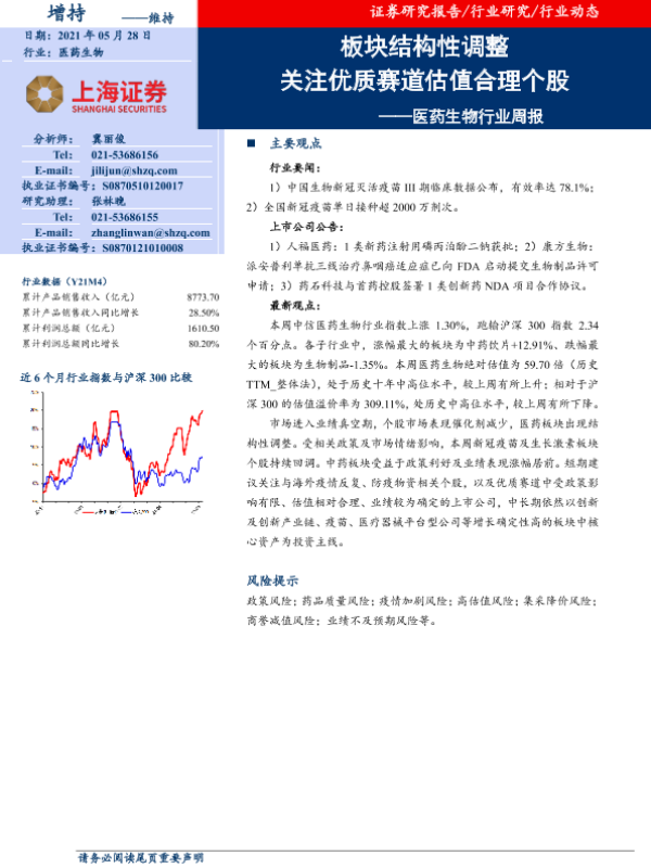 【上海证券】【20210528】医药生物行业周报:板块结构性调整 关注优质赛道估值合理个股-8页