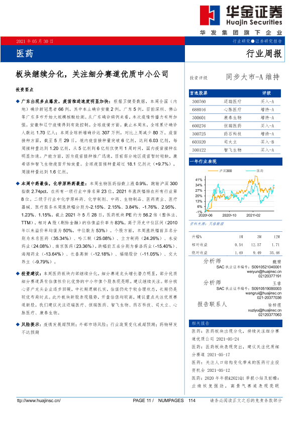 【华金证券】【20210530】医药行业周报:板块继续分化,关注细分赛道优质中小公司-15页