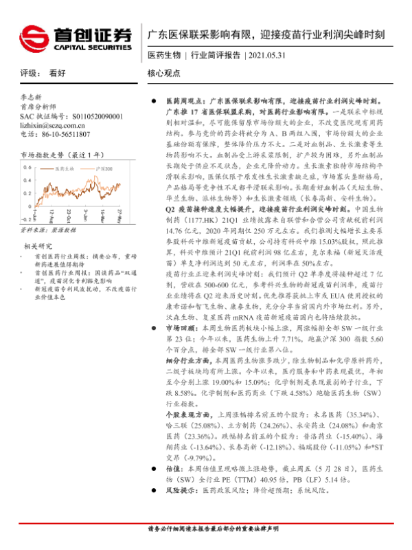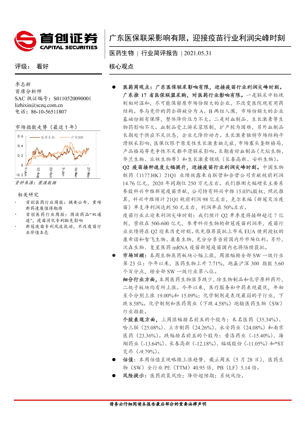 【首创证券】【20210531】医药生物行业简评报告:广东医保联采影响有限,迎接疫苗行业利润尖峰时刻-11页