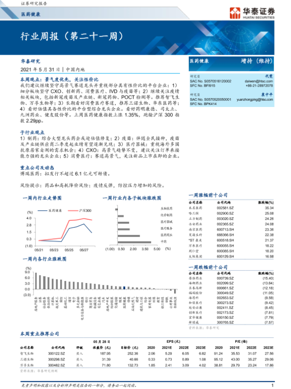 【华泰证券】【20210531】医药健康行业周报(第二十一周)-14页