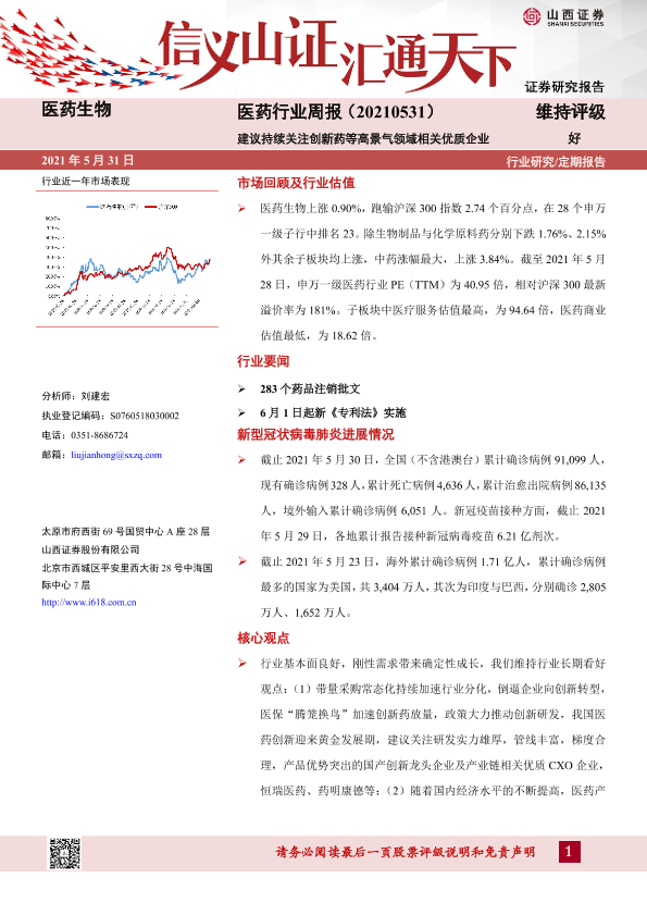 【山西证券】【20210531】医药行业周报:建议持续关注创新药等高景气领域相关优质企业-8页