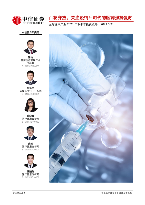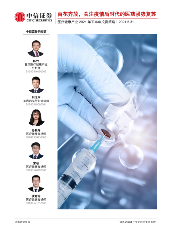 【中信证券】【20210531】医疗健康产业2021年下半年投资策略:百花齐放,关注疫情后时代的医药强势复苏-110页